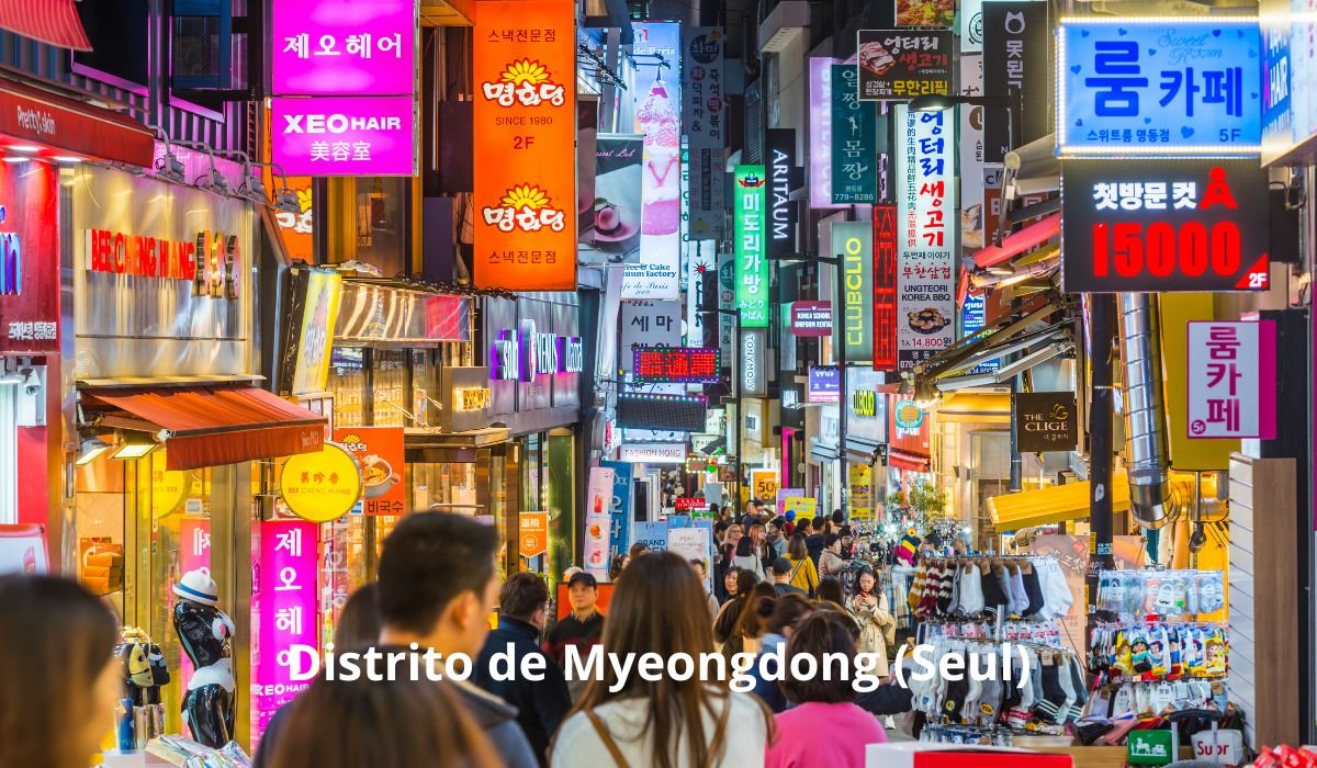 - Distrito de Myeongdong (Seul) – O paraíso das compras, onde você pode mergulhar na moda coreana, saborear a deliciosa comida de rua e aproveitar a vida urbana vibrante.