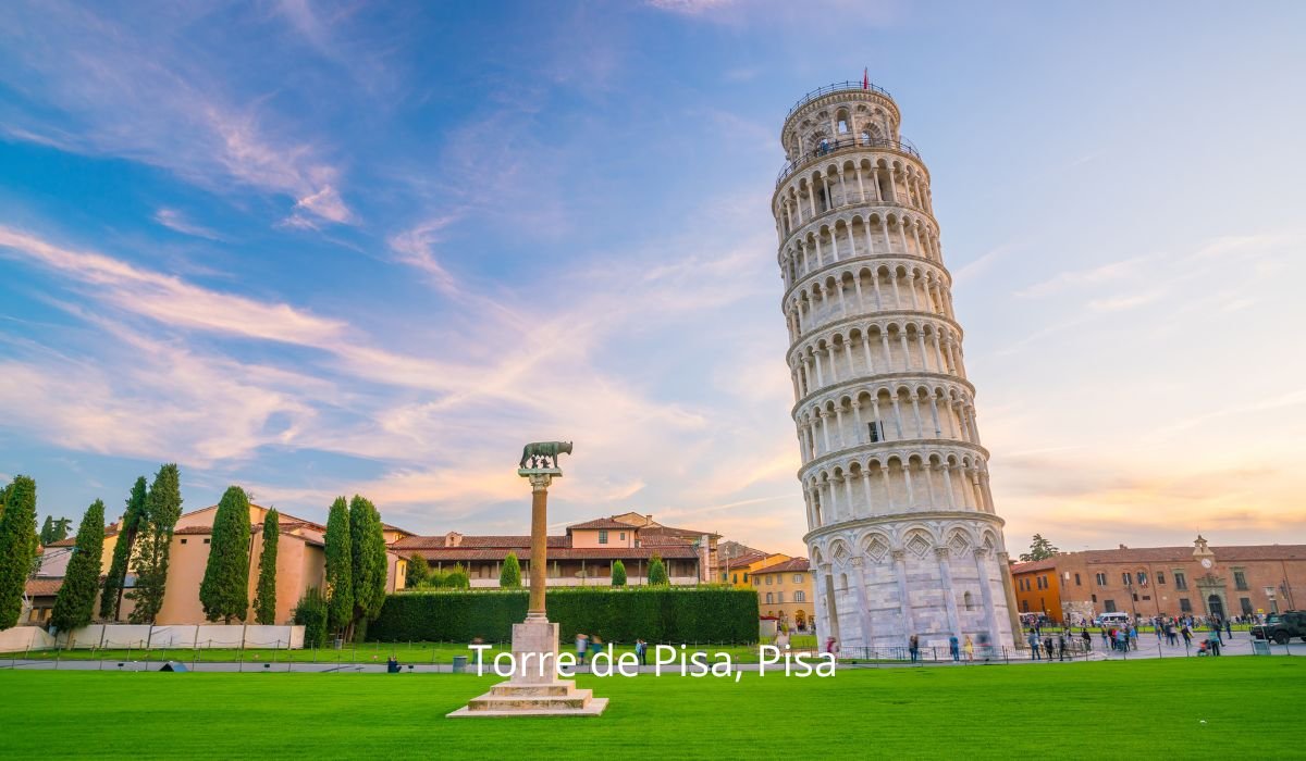 - Torre de Pisa, Pisa – Famosa por sua inclinação única, esta torre é uma das mais fotografadas do mundo, perfeita para a clássica pose de apoio.