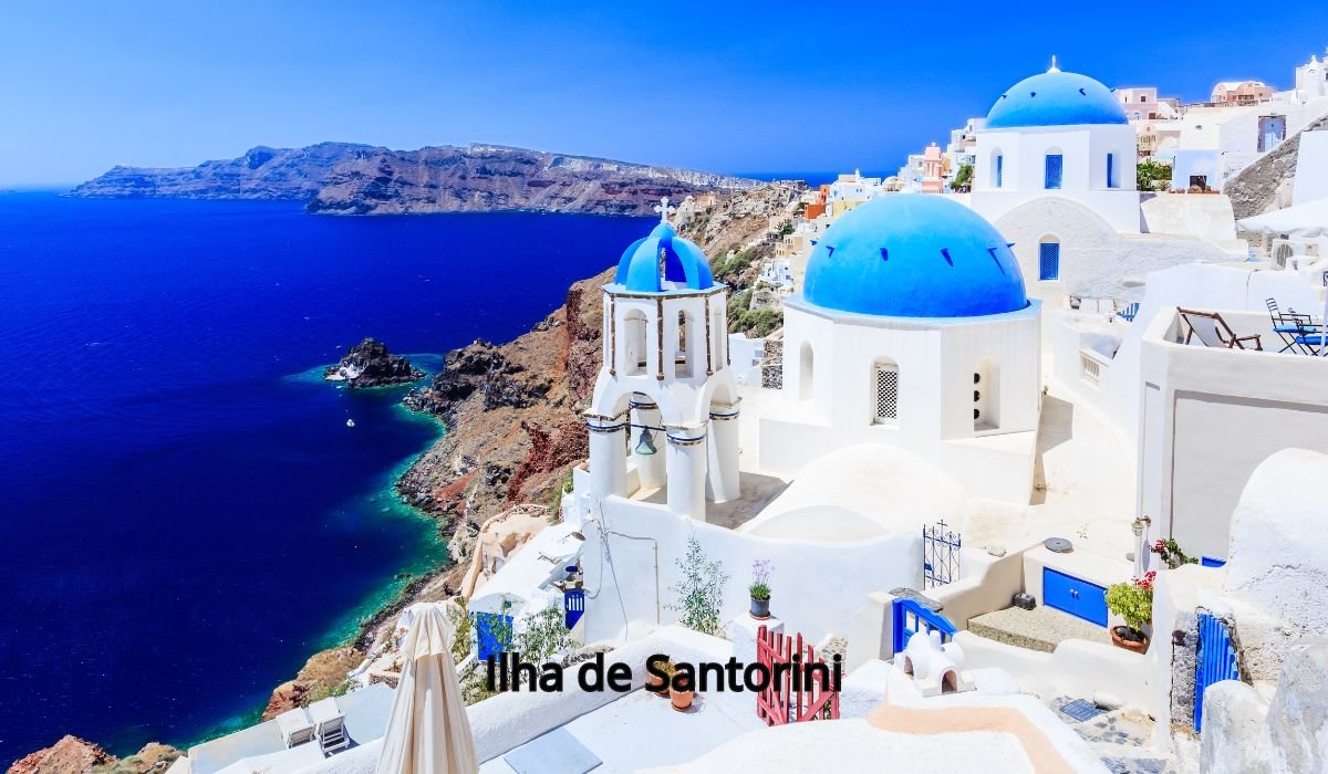 Ilha de Santorini – Famosa por suas casas brancas e cúpulas azuis, Santorini é um paraíso no Mar Egeu, perfeito para desfrutar de pôr do sol espetaculares.